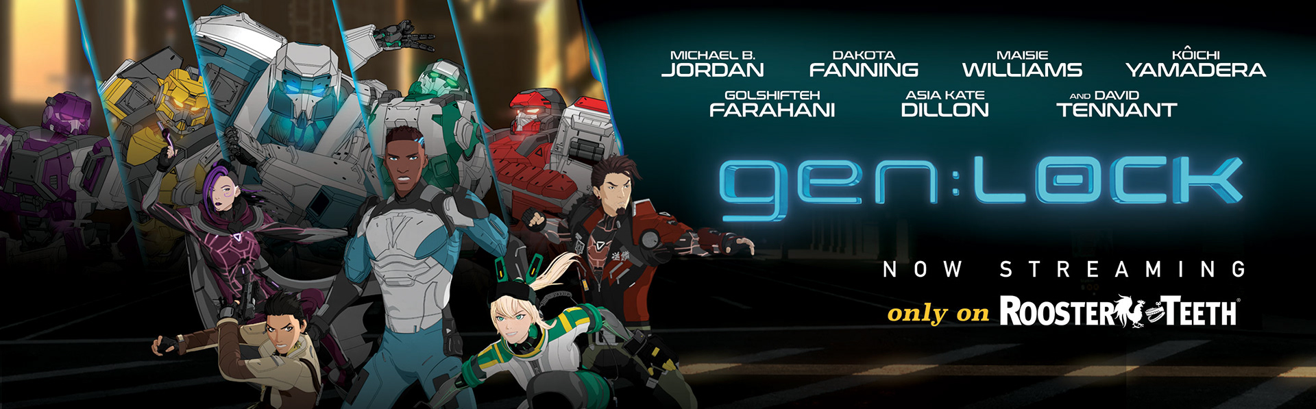 Featuring an all-star cast of voices from award-winning actors such as Michael B. Jordan, Maisie Williams, David Tennant, and Dakota Fanning, the science-fiction series "Gen:Lock" delivers an action-packed tale of mechanized warfare. Set in a dystopian future, Earth's last free society recruits a diverse young team of robot pilots in the hopes of saving the world. The story follows the Gen:Lock experiment as the members upload their minds to control giant mecha robots to do battle against the invading forces of The Union and its tyrannical leader.